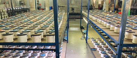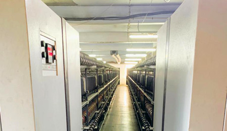 Certain fabrics require twisting in yarn for the desired feel and fall of the fabric. Twisting means significantly improving certain yarn properties and fulfilling textile requirements that cannot be fulfilled by the single yarns. When two or more single yarns are twisted together they are designated as doubled yarn, folded yarn or plied yarn and the machines intended for the purpose are called doublers, ply- twisters or two-for-one (TFO) twisters. Our T.F.O machine comes from one of the best manufacturers Alidhra Weavetech. T.F.O machine helps us to obtain long length of knot free yarns which facilitates better performance in the subsequent processes and also helps us to higher the productivity. This machine gives us an edge over our competitors and stand ahead of the race.